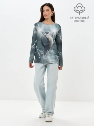 Лонгслив женский. Хлопок / Грозовой кошак.