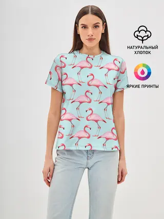Женская базовая футболка / Фламинго.