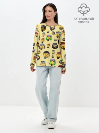 Лонгслив женский. Хлопок / Thinking emoji skins