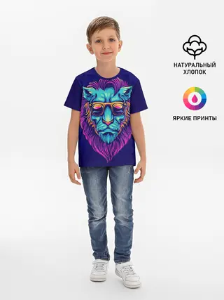 Детская базовая футболка / Неоновый лев в очках