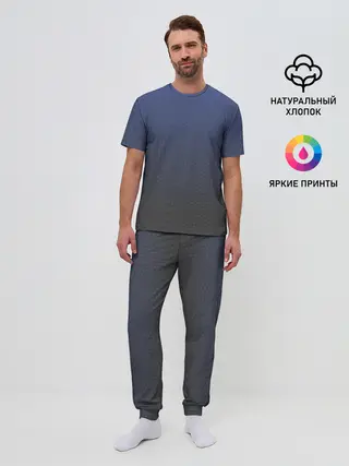 Мужская пижама с брюками / Серый октагон