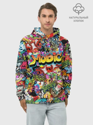 Худи мужской база хлопок / Граффити. Крейзи мьюзик