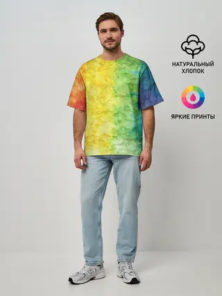 Мужская футболка оверсайз / разноцветный акварель градиент