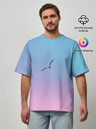 Мужская футболка оверсайз / чайки птицы полет градиент