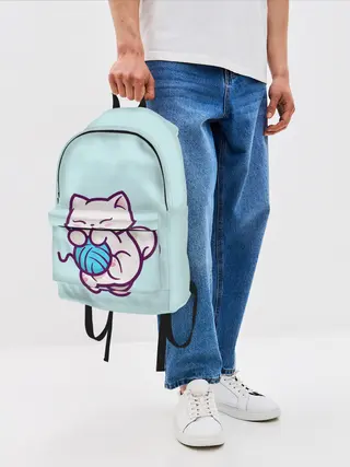 Рюкзак детский / Белый котенок с клубком милый