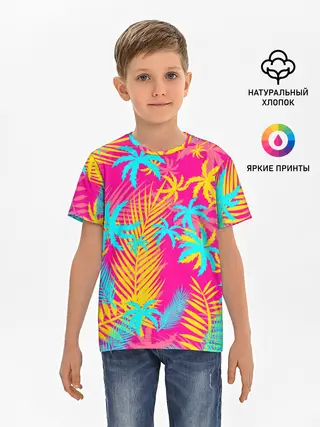 Детская базовая футболка / НЕОНОВЫЕ ПАЛЬМЫ / НЕОН / NEON