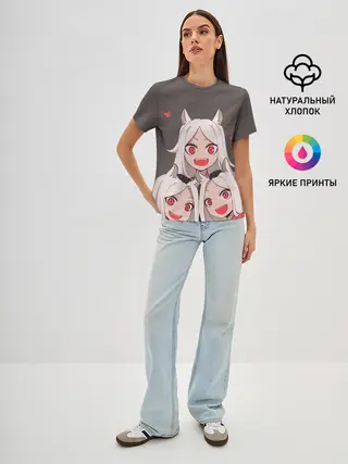Женская футболка оверсайз / Cerberus с сердечками Helltaker