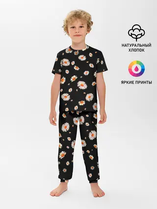 Детская пижама с брюками / Ромашки в ночи