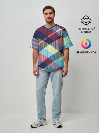 Мужская футболка оверсайз / Клетка / Текстура в клетку #2