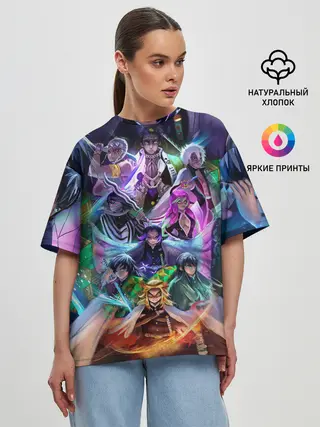 Женская футболка оверсайз / Герои Demon Slayer постер