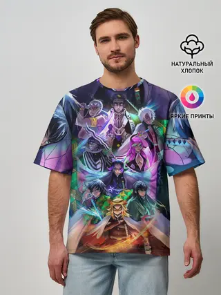 Мужская футболка оверсайз / Герои Demon Slayer постер