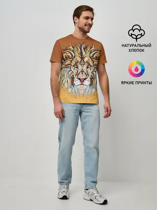 Мужская базовая футболка / Стилизованный арт ЛЕВ морда
