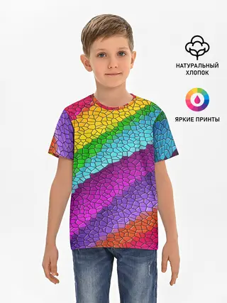 Детская базовая футболка / Яркая мозаика радуга диагональ