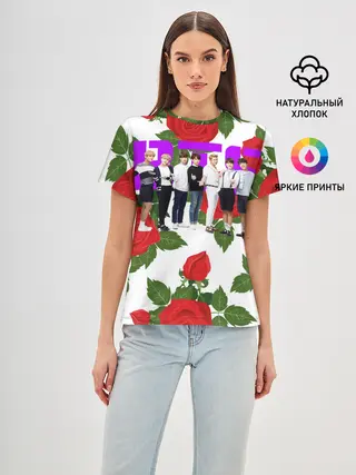 Женская базовая футболка / BTS Roses | White