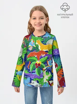 Детский лонгслив / Текстура Холст | Сафари