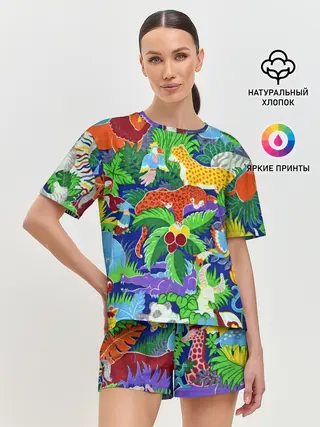 Женская футболка оверсайз / Текстура Холст | Сафари
