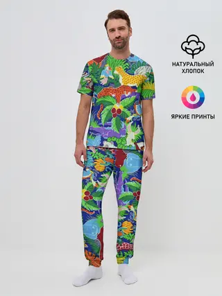Мужская пижама с брюками / Текстура Холст | Сафари