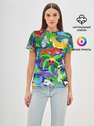Женская базовая футболка / Текстура Холст | Сафари