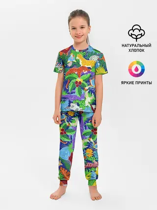 Детская пижама с брюками / Текстура Холст | Сафари