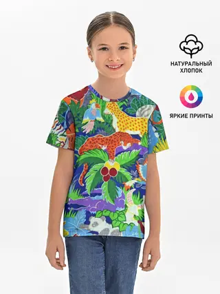 Детская базовая футболка / Текстура Холст | Сафари