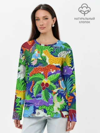 Лонгслив женский. Хлопок / Текстура Холст | Сафари