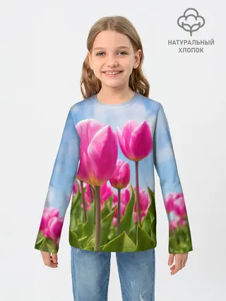 Детский лонгслив / Розовые тюльпаны