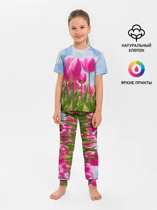 Детская пижама с брюками / Розовые тюльпаны
