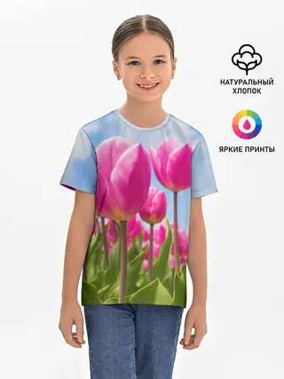 Детская базовая футболка / Розовые тюльпаны