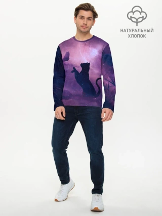 Мужской лонгслив базовый / Кошка играет с бабочкой
