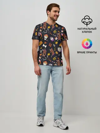 Мужская базовая футболка / Скуби-Ду Хэллоуин паттерн