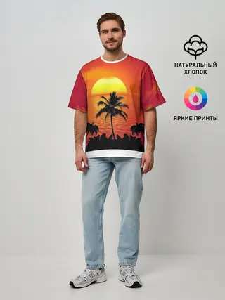 Мужская футболка оверсайз / Пальмы на фоне моря