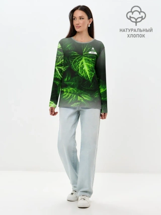 Лонгслив женский. Хлопок / Листья зеленые CODE ERROR 404