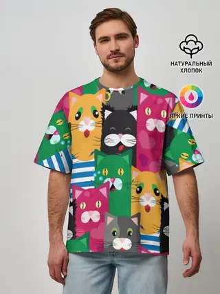 Мужская футболка оверсайз / Голодные котики.