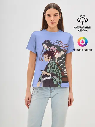 Женская футболка оверсайз / Tanjirou & Nezuko