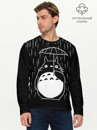 Мужской лонгслив базовый / Тоторо прячется от дождя