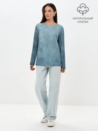 Лонгслив женский. Хлопок / Оттенки синего