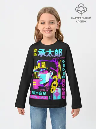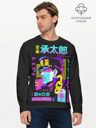 Мужской лонгслив базовый / Дзётаро разноцветные надписи