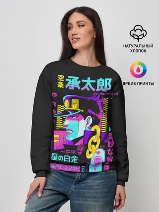 Мужской свитшот базовый / Дзётаро разноцветные надписи