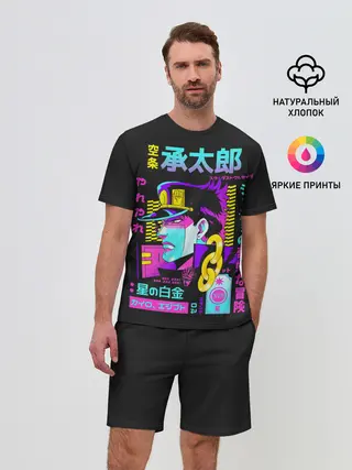 Мужской костюм с шортами / Дзётаро разноцветные надписи