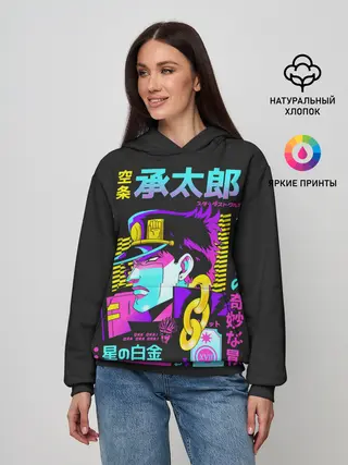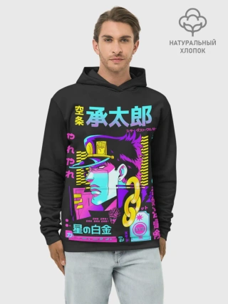 Худи мужской база хлопок / Дзётаро разноцветные надписи