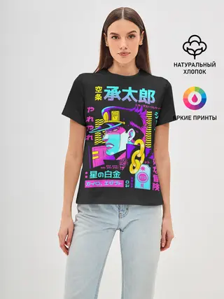 Женская базовая футболка / Дзётаро разноцветные надписи