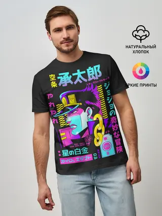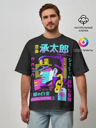 Мужская футболка оверсайз / Дзётаро разноцветные надписи