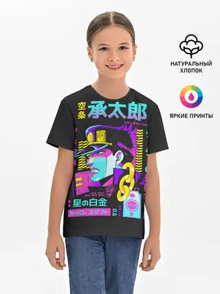 Детская базовая футболка / Дзётаро разноцветные надписи