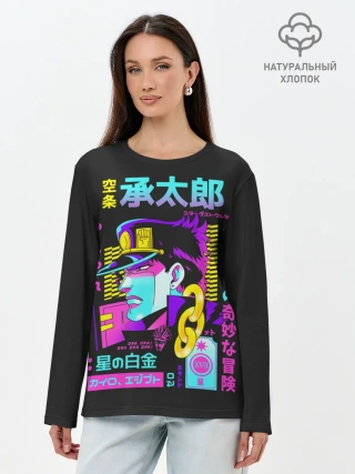 Лонгслив женский. Хлопок / Дзётаро разноцветные надписи