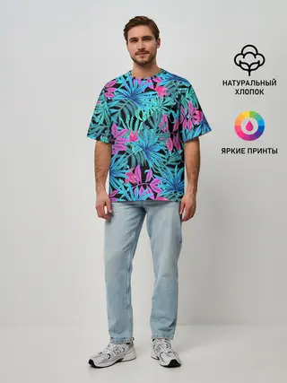Мужская футболка оверсайз / Яркие цветы