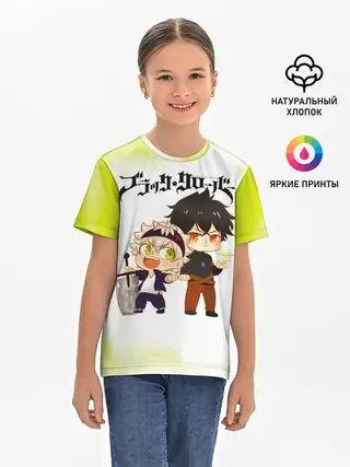 Детская базовая футболка / Аста и Юно Чёрный клевер