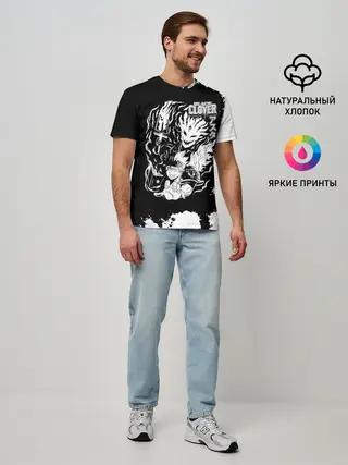 Мужская базовая футболка / Чёрный клевер Аста и демон Либе