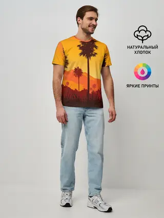 Мужская базовая футболка / Лето, Пальмы, вечер