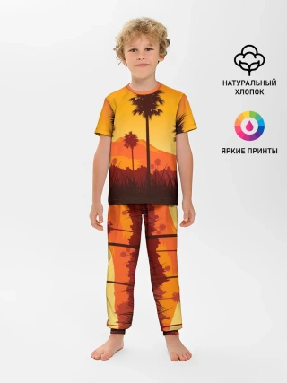 Детская пижама с брюками / Лето, Пальмы, вечер