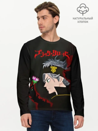 Мужской лонгслив базовый / Чёрный клевер Аста и цветок